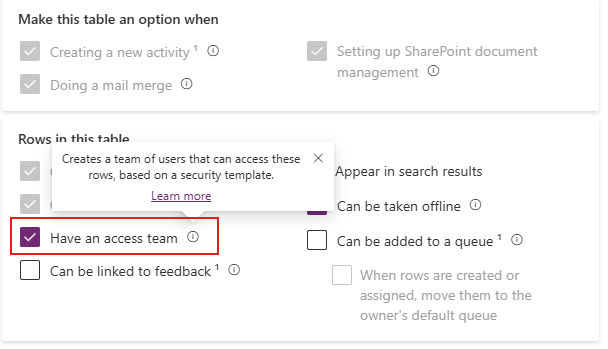 Enabling Access Teams on a Table