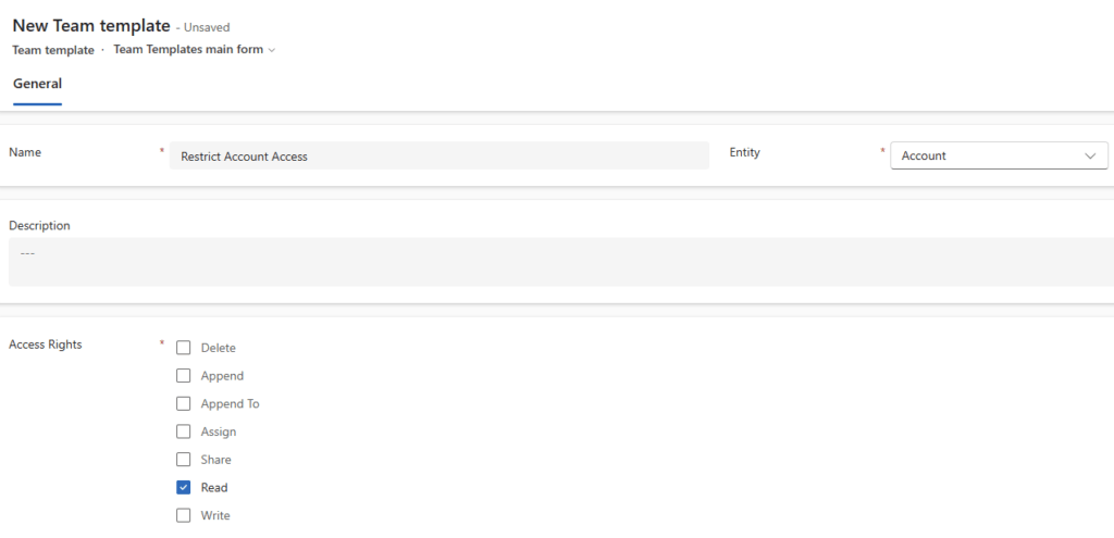 Creating an Access Team Template