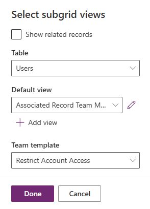 - Locate the Access Team subgrid