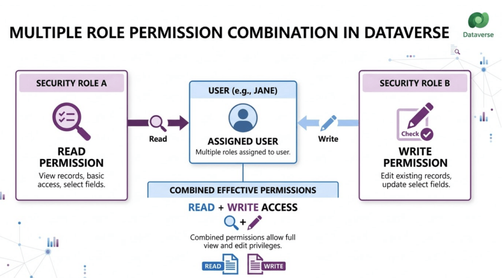 In Dataverse, a user can have multiple security roles.